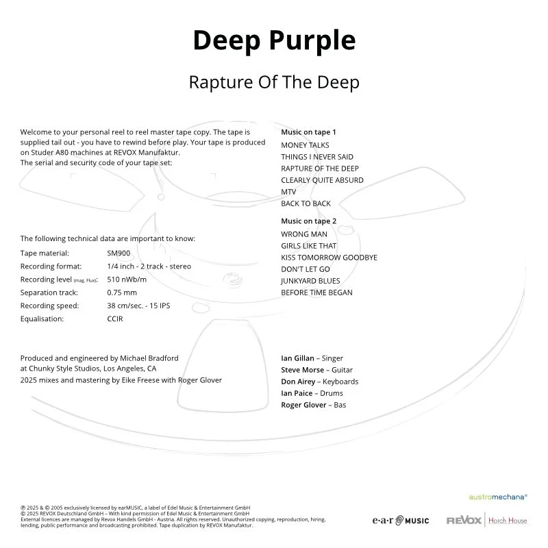 The remastered version takes the band's powerful sound, brilliant instrumentation and captivating dynamics to a new level on reel to reel tape.